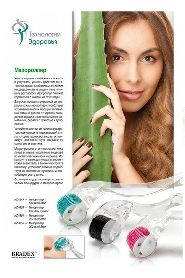 Мезороллер – уникальная новинка в сфере косметологии. Аппарат представляет собой валик с тончайшими иглами из стали, которые проникают в кожу на 0,2 мм, заставляя ее активнее вырабатывать коллаген и эластин, что делает кожу моложе и эластичнее. Эксперты пришли к выводу, что в дерму попадает не более 3% питательных веществ. Мезороллер помогает повысить этот процент. Небольшие проколы от игл аппарата становятся каналами, через которые в кожу поступают питательные вещества.
