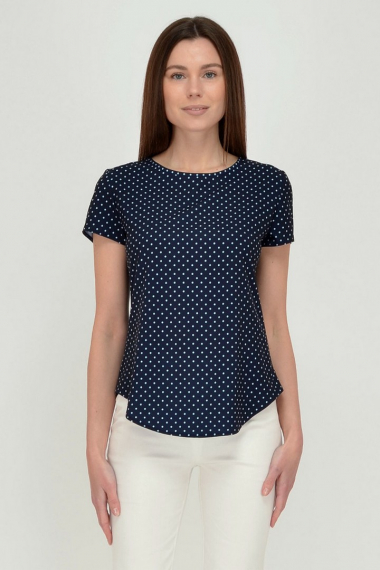 Фото товара 19974, темно-синяя блузка в горошек