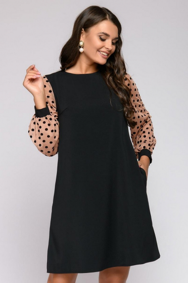 Фото товара 21971, черное платье свободного силуэта с длинными рукавами из фатина