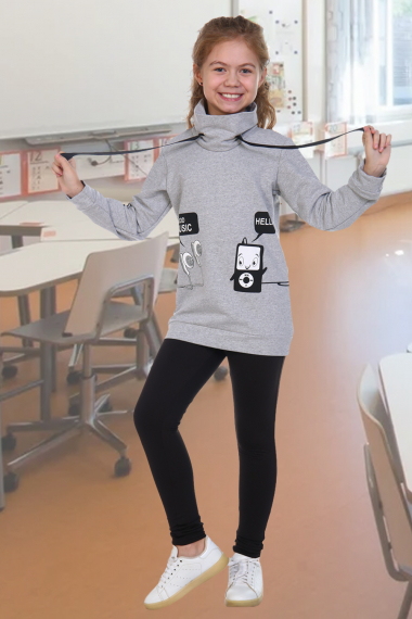 Фото товара 22649, серая удлиненная толстовка для девочки